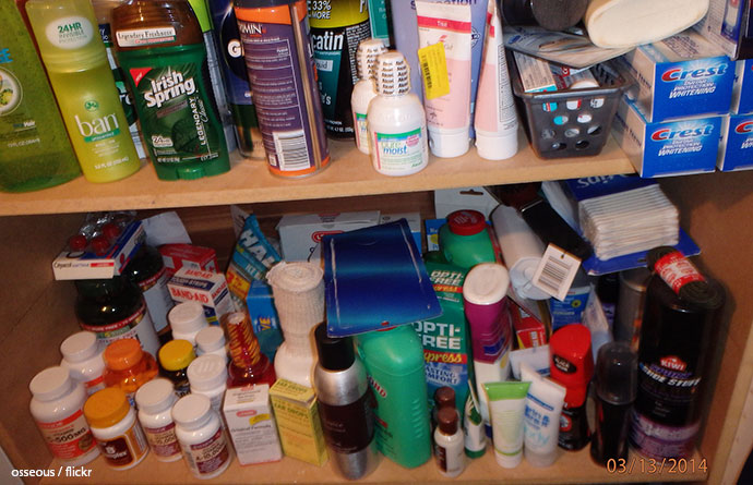 The first task is to go through all your toiletries, getting rid of the items that you do not need or want.