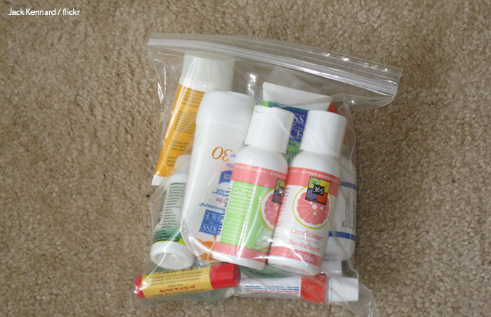 If you have a toiletry bag, then seal the lids of your toiletries as described above.