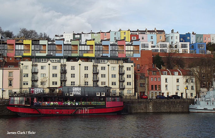 The colourful flats above Bristol Harbour