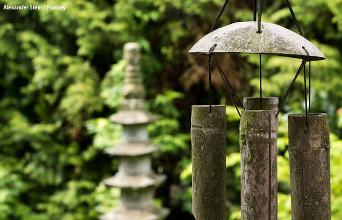 #8 Wind chimes – Wind chimes are made in a range of materials and have differing numbers of rods, each having its own auspicious properties. As we are trying to attract positive energy and good luck to our home, the most auspicious wind chimes will have 5 cylinders which represent the five elements of Feng Shui. Traditionally, wind chimes should be made of metal rods and hung using red ribbon.